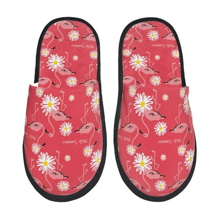 Noikeo Hello Summer Flamingo Pattern Cozy Slippers Indoor for Women and Mens Fuzzy House Shoes Soft Plush Warm Slip-on Slippers-Medium