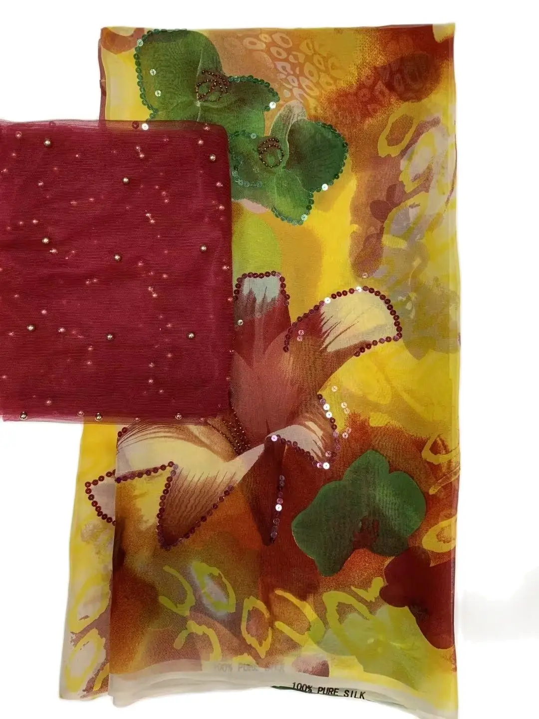 5 + 2 ярда, искусственная ткань с цветочным принтом и тюль, шарф из бисера, в стиле пэчворк, сделай сам, ширина 140 см, мягкий, 6 мм, тонкий