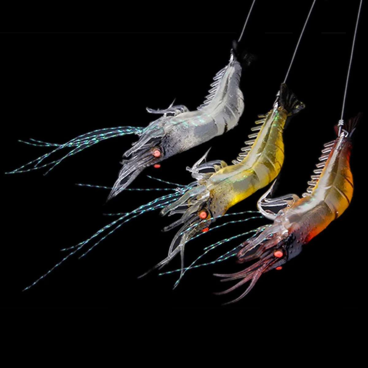 High Simulation Luminous Soft Silicone Artificial Bait, Shrimp Fishing Shrimp Bream False Lure Baits with Barbed Hook