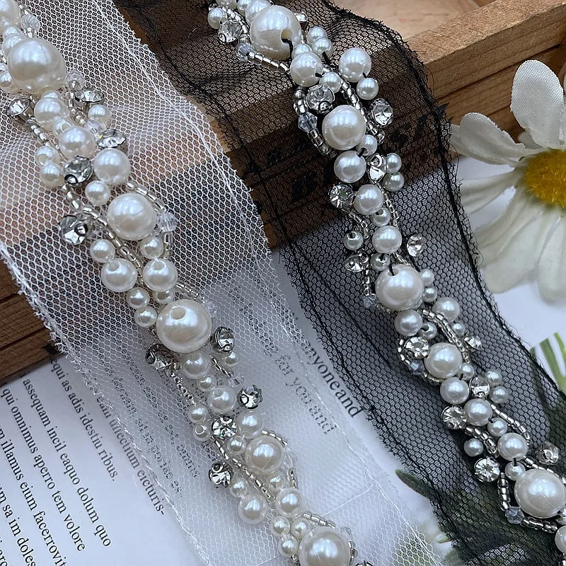 5,8 ярдов кружевная отделочная лента с кристаллами и бусинами для рукоделия, свадебное платье, воротник, шитье одежды, головной убор, жемчужные кружевные края