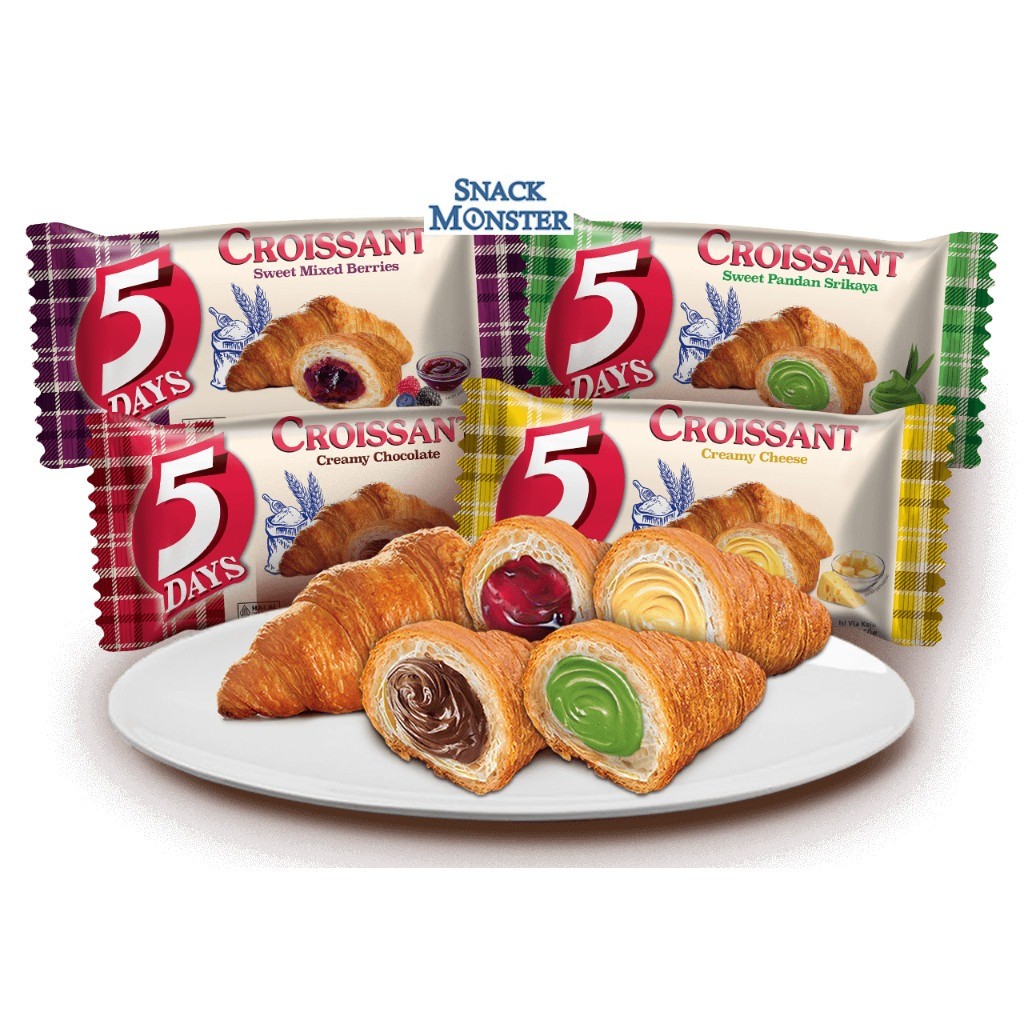5 Days 5Days Roti Croissant Kue Rasa Chocolate, Cheese - Netto 60 gr