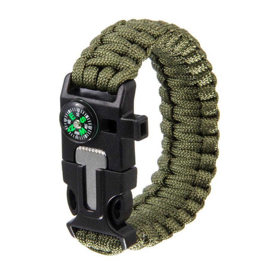 5 In 1 Compass Flint Bracelet Outdoor Escape Survival Hand Rope Survival Whistle Lifesaving Flint Bracelet