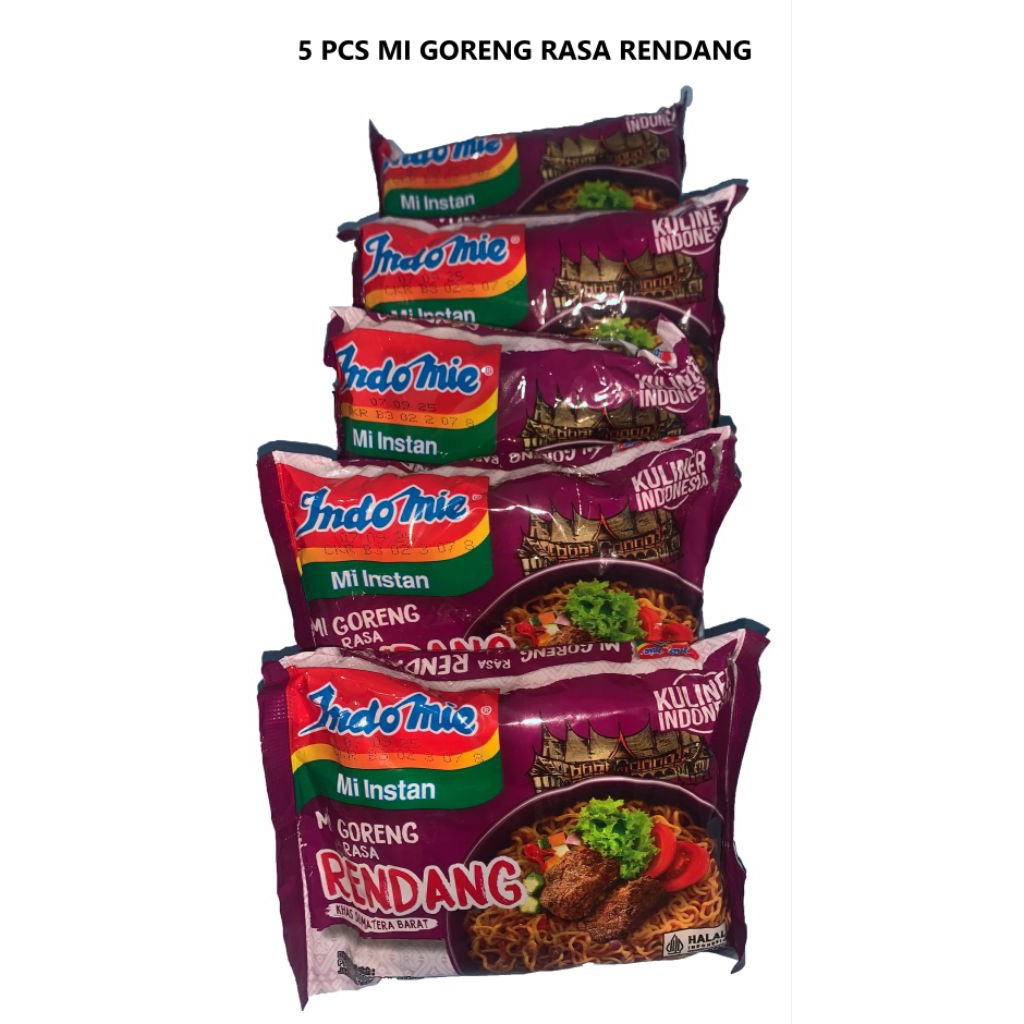 5 Pcs Indomie Mi Goreng Rasa Rendang Berat Satuan 91g