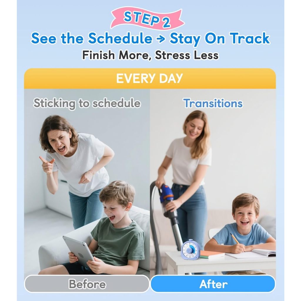 [Stay On Task]: Help children stay focused with a tick-free visual timer for kids with autism. Great for morning routines, bedtime, or homework, it teaches time limits and task management. The ADHD tool and sensory toy for kids with autism, designed to support smoother daily planning. The toys for autistic kids ages 3-5-7 build routines and ease transitions