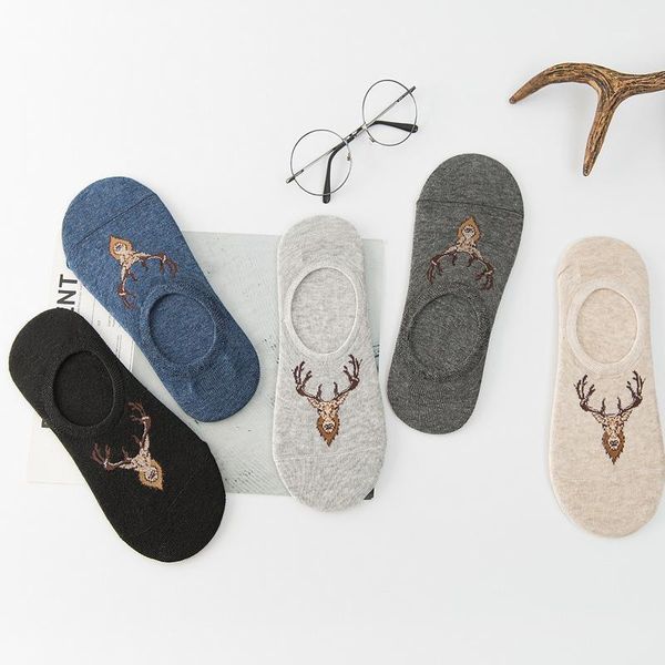 5 pair/set men's socks invisible silicone non slip ankle socks cotton printed short no show boat summer cool1, Black