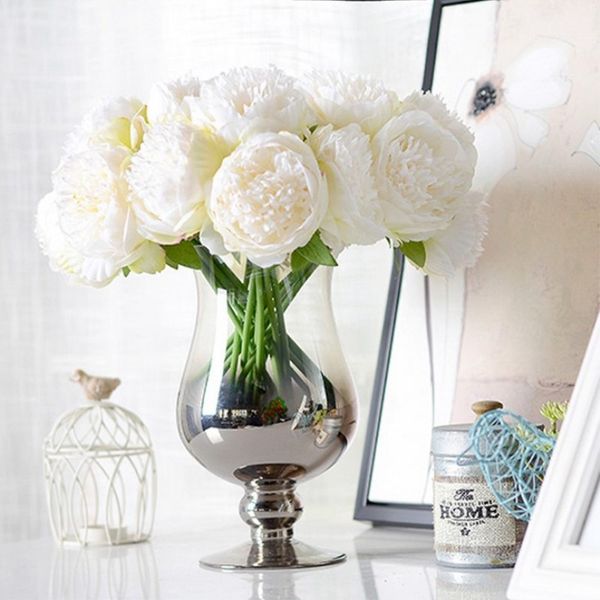 5 pcs 1 bunch european artificial flower fake peony bridal bouquet for christmas wedding party home decorative