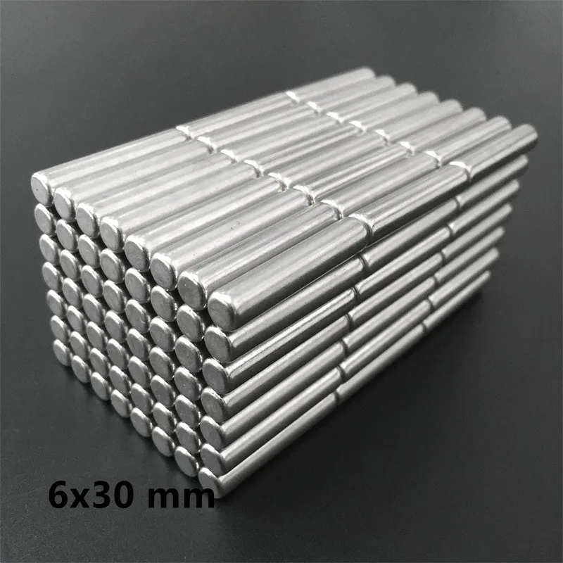 5 ~ 60 шт. 6x30 мм толстый Сильный цилиндр редкоземельный магнит 6 мм * 30 мм круглый неодимовый магнит 6x30 мм маленький магнитный диск 6*30 мм N35