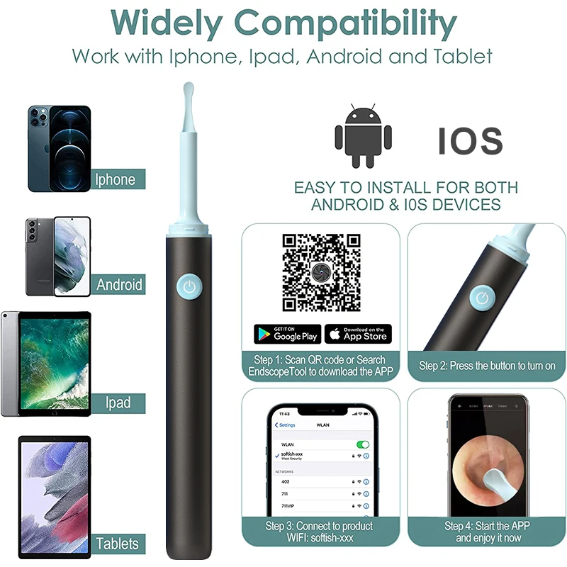 5. Беспроводной смарт-отоскоп для удаления ушного воска, 0 МП, Wi-Fi