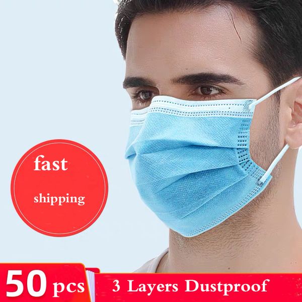 50шт высокое качество мужчины женщины лицо рот маски одноразовые маски mascherine нетканые одноразовые антипылевые earloops маски бесплатная