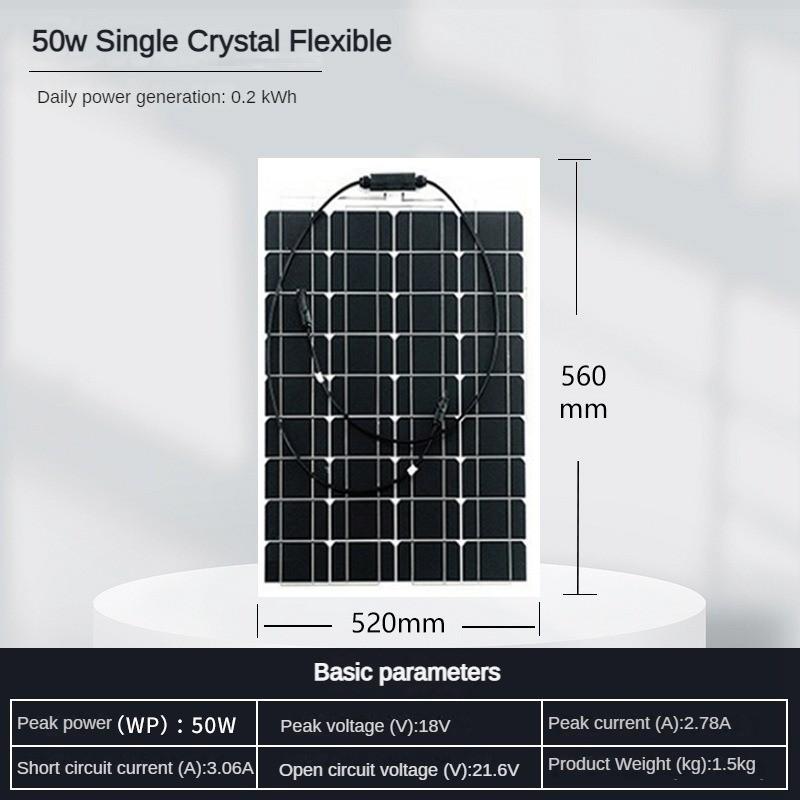 50 Вт/100 Вт/150 Вт Портативная гибкая солнечная панель Монокристаллический кремний Фотоэлектрическая панель для выработки электроэнергии Крышная панель солнечных элементов 50W