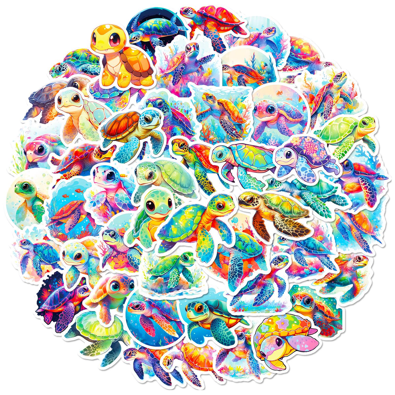 50 красочных наклеек с черепахами Морские существа Красочные черепахи Серия «Маленькие черепахи» Наклейки-граффити