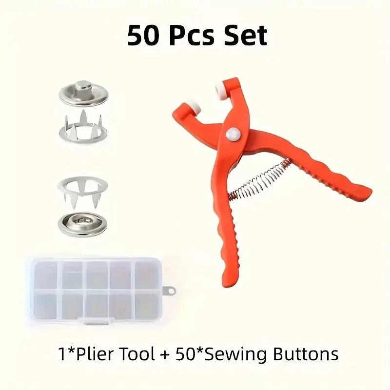 50 наборов металлических кнопок с плоскогубцами для застежек, набор пресс-инструментов для шитья и рукоделия 50Set