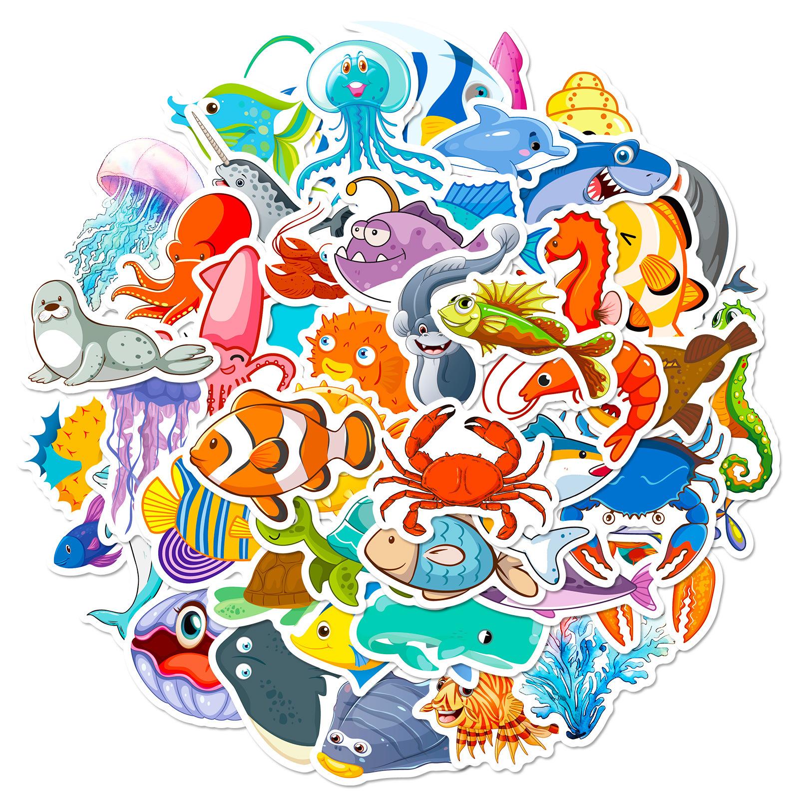 50 наклеек «Морская жизнь» Серия «Подводный мир» Мультяшные Милые Сделай сам Морская звезда Медуза Граффити-наклейки