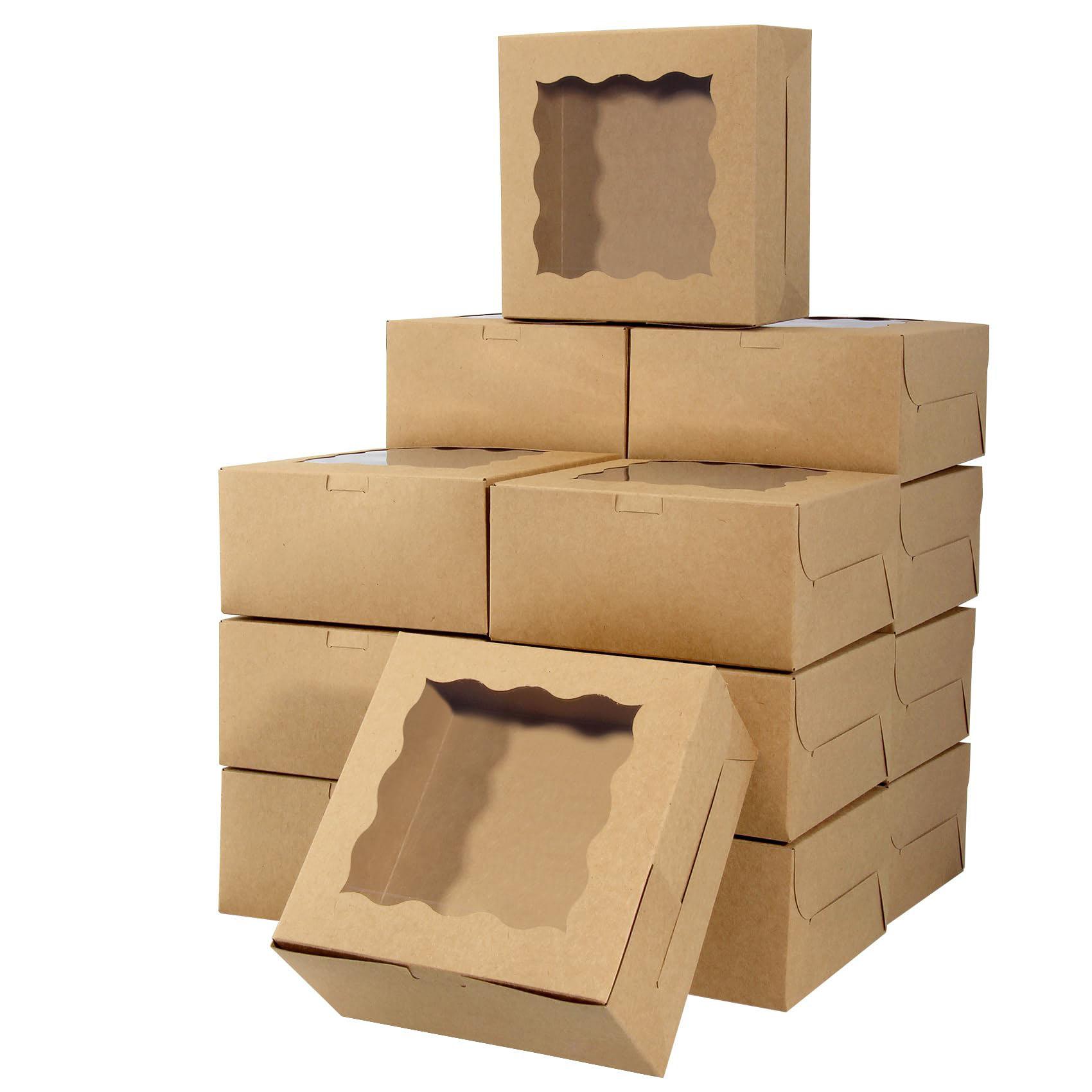 50 шт. Коричневые кондитерские коробки с окном, Маленькие коробки для печенья на День отца, для угощений, выпечки, клубники в шоколаде, макаронс, кексов 50PCS