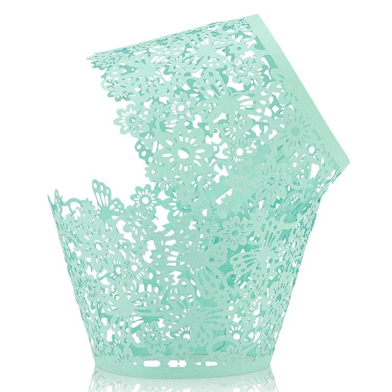 50 шт. лазерная резка полых формочек для кексов, формочек для выпечки кексов на детский праздник, свадьбу, день рождения, вечеринку, украшение торта тиффани синий