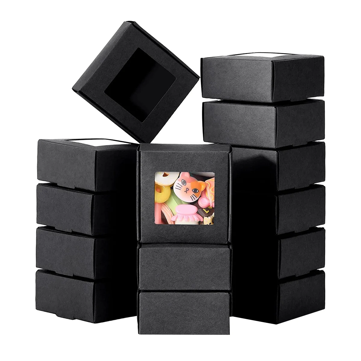 50 шт. мини-коробка из крафт-бумаги с окошком, подарочная упаковочная коробка, коробка для лечения домашнего мыла, пекарни, конфет (черный)