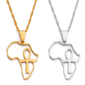 Anniyo Africa Map & Ankh Pendant Necklace Women Girl Gold Color Jewelry African Maps Chains Egyptian Symbol Cross