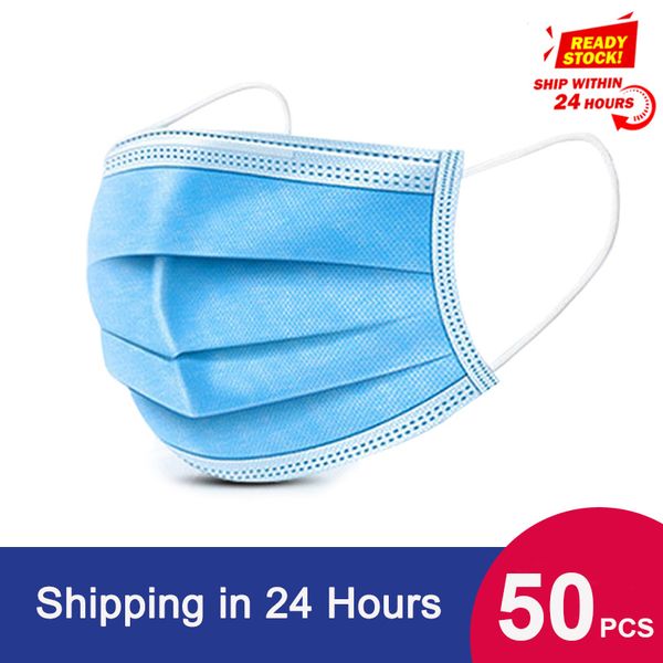 50 шт. нетканые одноразовые рот маски защитные 3-х слойные бактериальных анти-петлевыми креплениями гриппа лицо анти-пыли маска