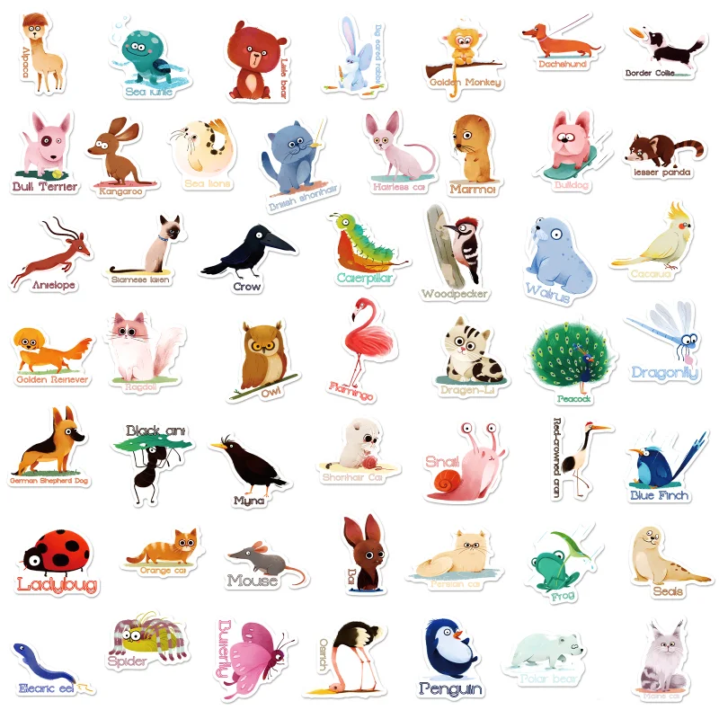 50 шт. новых мультяшных милых наклеек с животными, граффити «сделай сам», наклейки для детей, милые наклейки