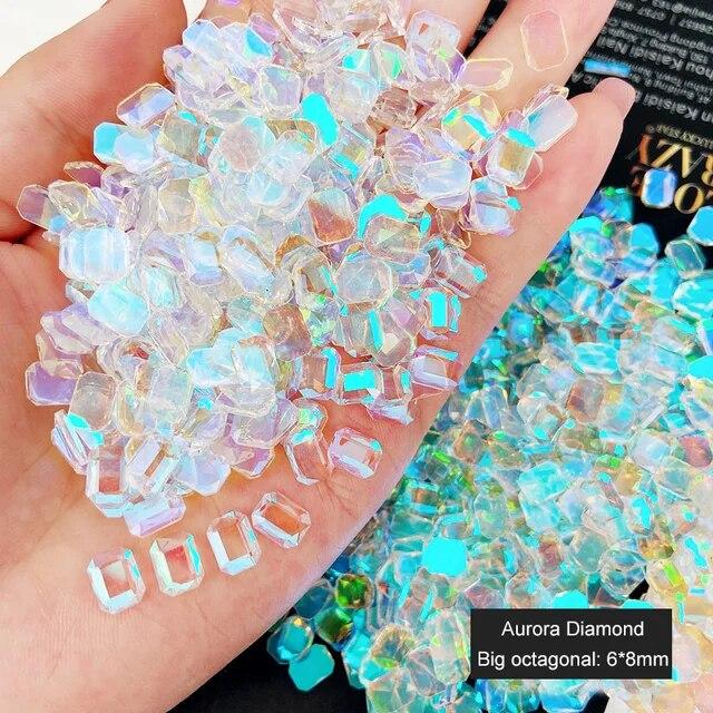 50 шт., сверло в форме гвоздя, детали со стразами, иллюзия Авроры, прозрачный кристалл, капля, ромб, стрелка, красочные камни с плоской поверхностью, 3D драгоценные камни, украшение для ногтей