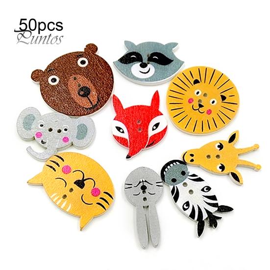 50 шт., смешанные животные, декор для скрапбукинга, швейные аксессуары, деревянные пуговицы с 2 отверстиями