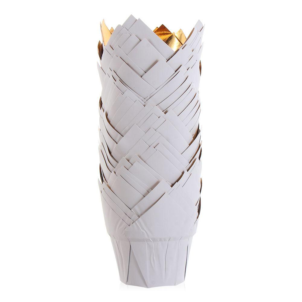 50 шт. формочек для выпечки в форме тюльпана, формочки из алюминиевой фольги, формочки для кексов, кексов, контейнеры для крем-брюле, украшения для вечеринки на свадьбу, день рождения белый