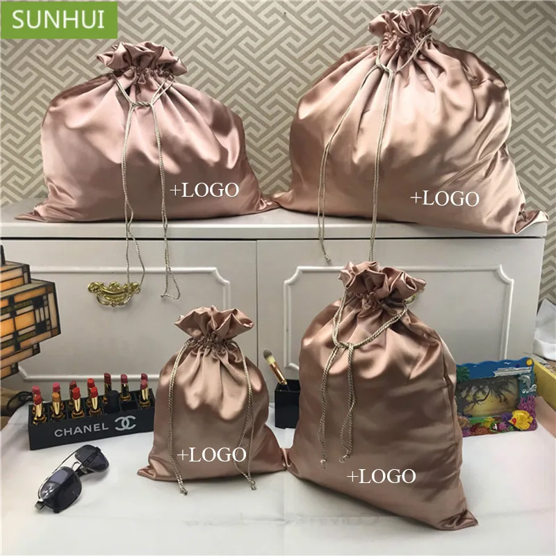 50 шт., шелковые атласные мешочки для ювелирных изделий цвета шампанского