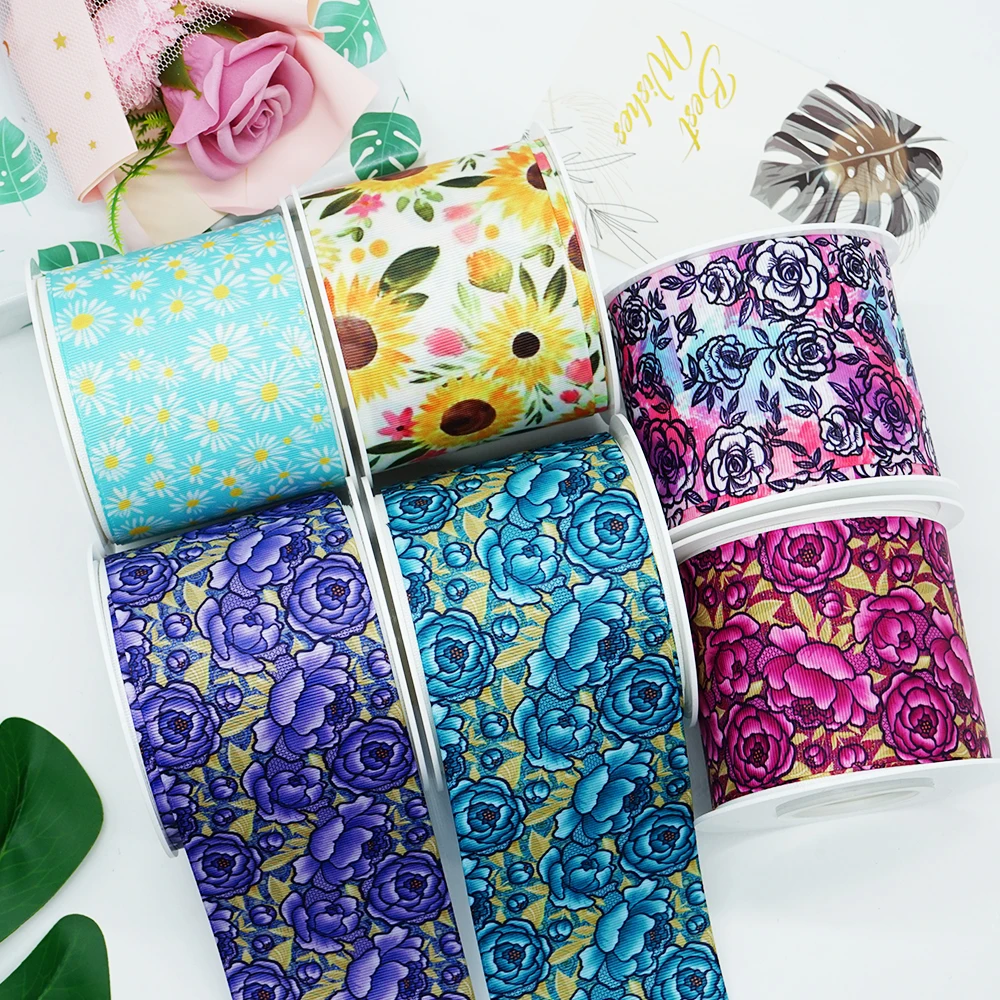 50 ярдов, корсажные атласные ленты с цветочным принтом для бантов, товары для украшения поделок «сделай сам», 30 шт. смол. 60535
