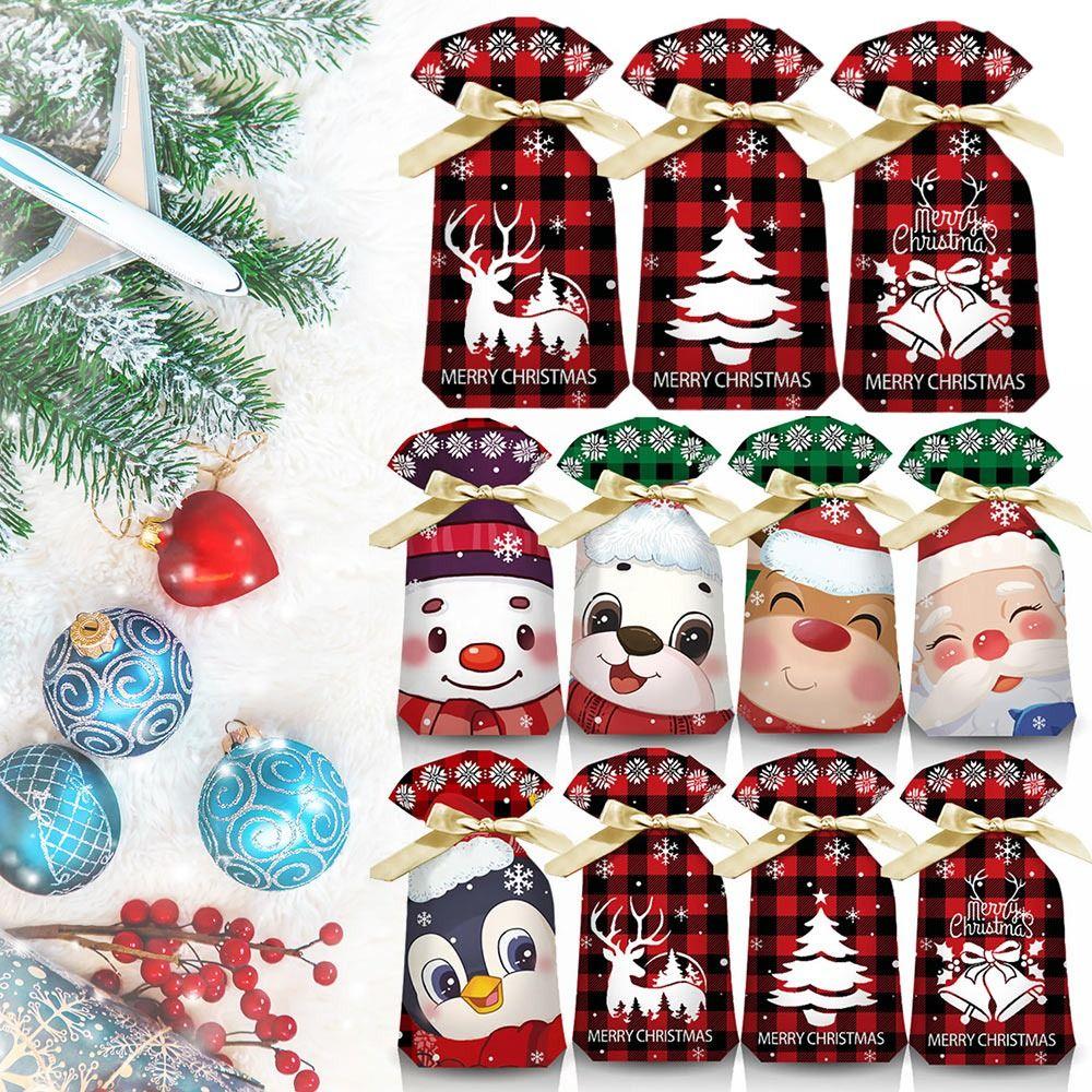50/100PCS Santa Claus Plastic Packaging Bag Snowman Rabbit Ears Gift Bags Christmas Candy Bag Xmas 7x10cm-A-100Pcs