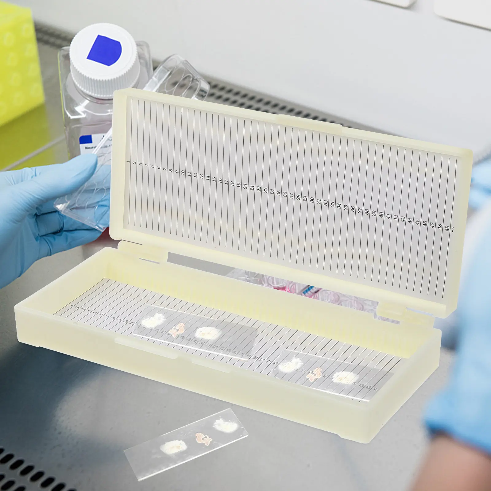 50 Grid Professional Storage Box for Prepared Microscope Slides Scientific Slide Capacity Secure Holder