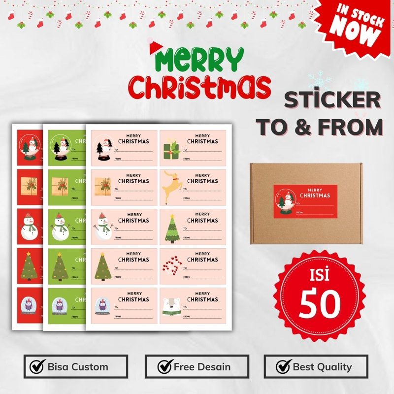 50 PCS STICKER TO FROM NATAL MERRY CHRISMAST TERBARU