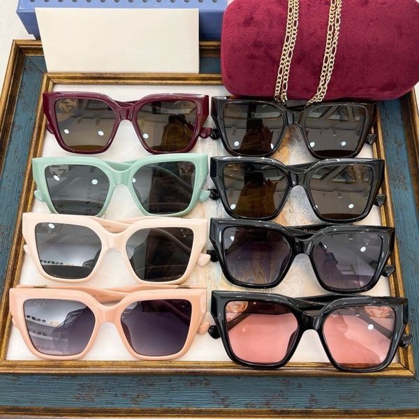 50% discount for factory direct salesg family style net red same female personality box with chain sunglasses tide gg1023, White;black