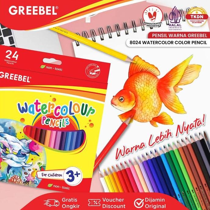 Terbaru Greebel Pensil Warna (8024) 24 Warna Watercolour / Pensil Warna Greebel / Coloring Pencil Warna Aman untuk Anak Mewarnai