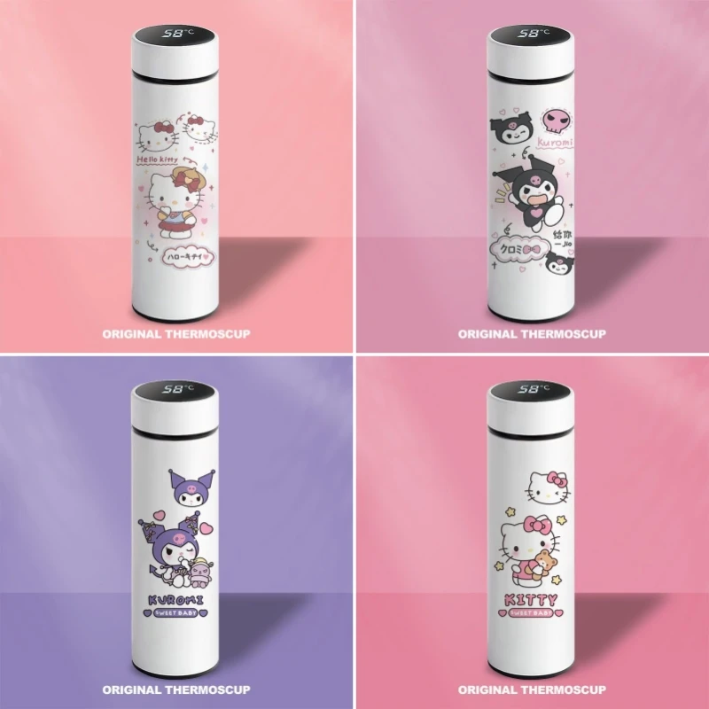 500 мл Kawaii Anime Sanrio, Hello Kitty Cinnamoroll Thermo Cup Cute Kuromi Cartoon бутылочка для сока напитка 304 подарок для девушки из нержавеющей стали