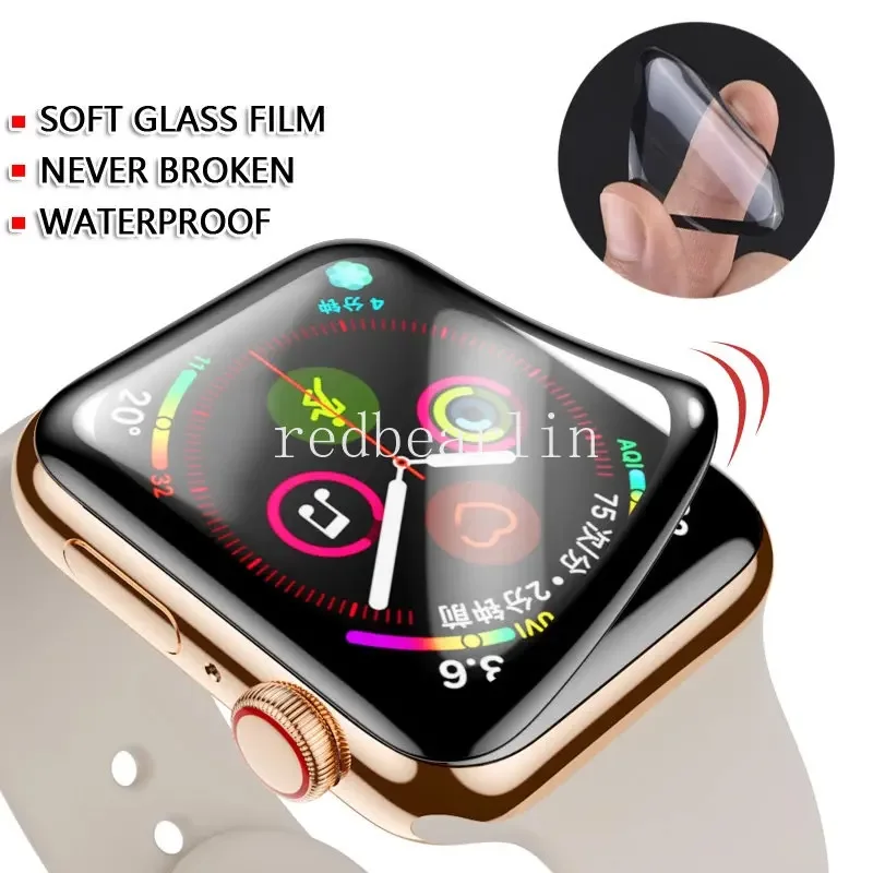 500 шт., защитная пленка для Apple Watch серии 45 мм, 41 мм, 44 мм, 40 мм, 42 мм, 38 мм, мягкое стекло 9D HD, полная пленка для iWatch 8, 7, 6, 5, 4