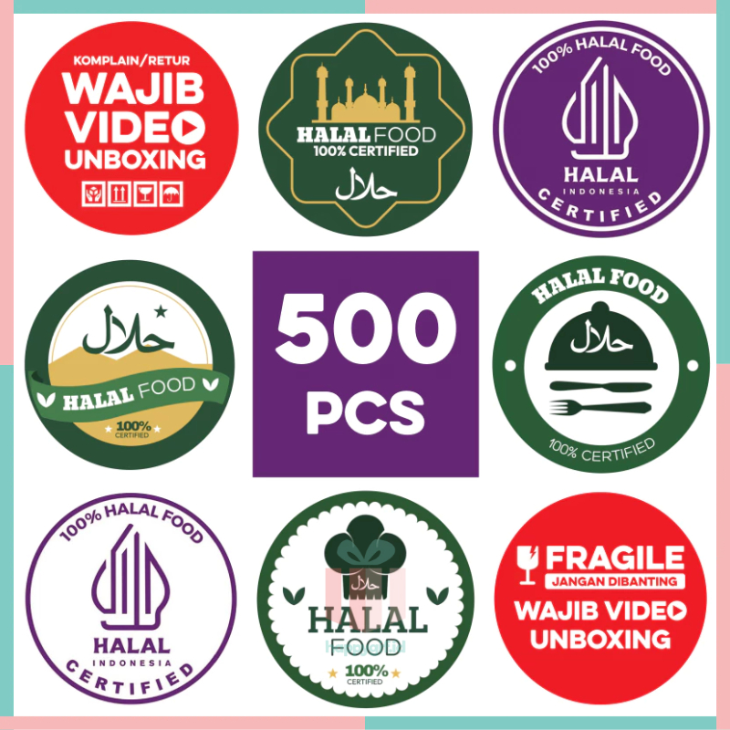 500 Pcs Stiker HALAL WAJIB UNBOXING Sticker Label Bulat ST001