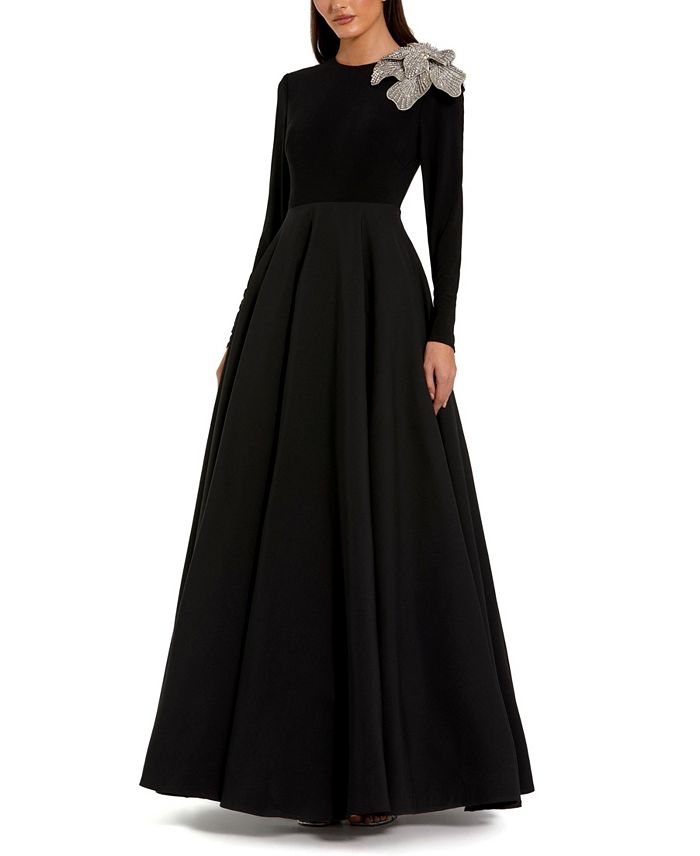 Бальное платье из тафты с длинными рукавами и 3D-цветочной отделкой Mac Duggal, черный