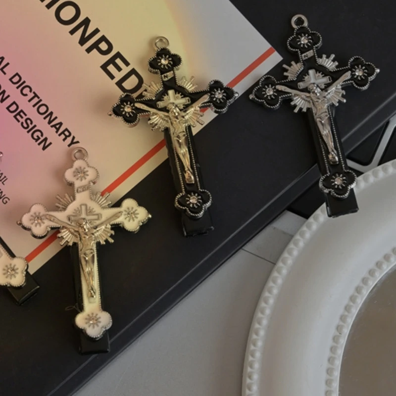 50JB Y2K Заколка для волос для девочек Готические заколки с крестом Боковой зажим Заколки для волос в стиле панк