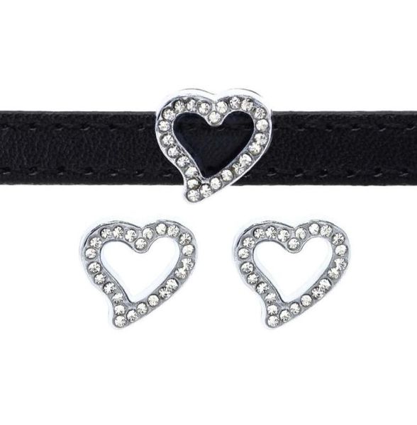 50pclot 8mm rhinestones heart slide charm fit for 8mm wristband bracelet pet collar diy accessories9445002, Bronze;silver