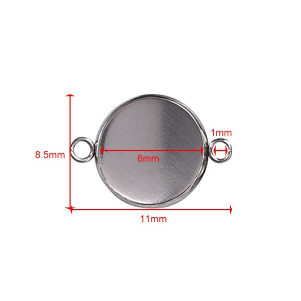 50pcs/lot 6mm stainless steel connector setting cabochon base 1/1 loop flat round bezel diy component cameo charm pendant trays