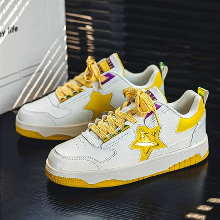 Men‘s Fashion Star Pattern Color Block Faux Leather Anti-skid Lace Up Skate Sneakers Men‘s Elevator Shoes