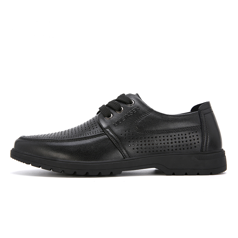 spring/summer men's business casual leather shoes trend formal breathable lace-up low-dad dress, Black