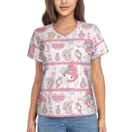 My Melody Women S Classic-Fit Cotton Short-Sleeve V Neck T-Shirt,Tunic Blouse Top Ladies Casual Loose Top