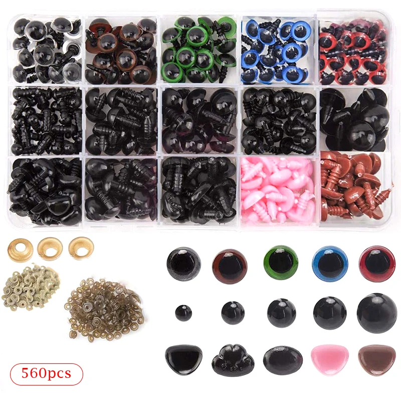 560 шт. безопасные глаза и носы с шайбами для кукол мягких животных крючком черные блестящие глаза для рукоделия изготовления Мишки Тедди