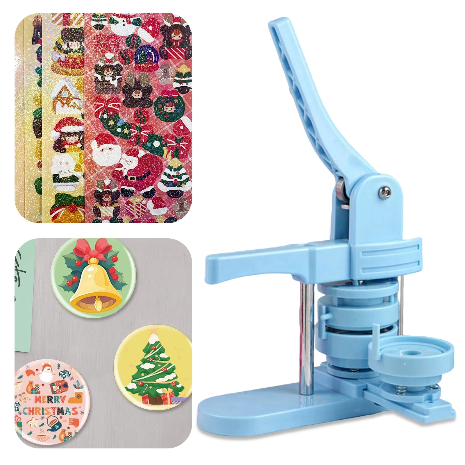 58mm Button Badge Maker Machine with 100pcs Button Parts and Circle Cutter DIY Round Pin Badge Making Kit Badge Maker Machine