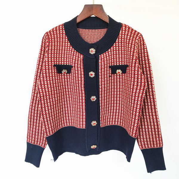 59% off factory outlet store early spring round neck long sleeve drill button fake pocket knitted cardigan, White;black