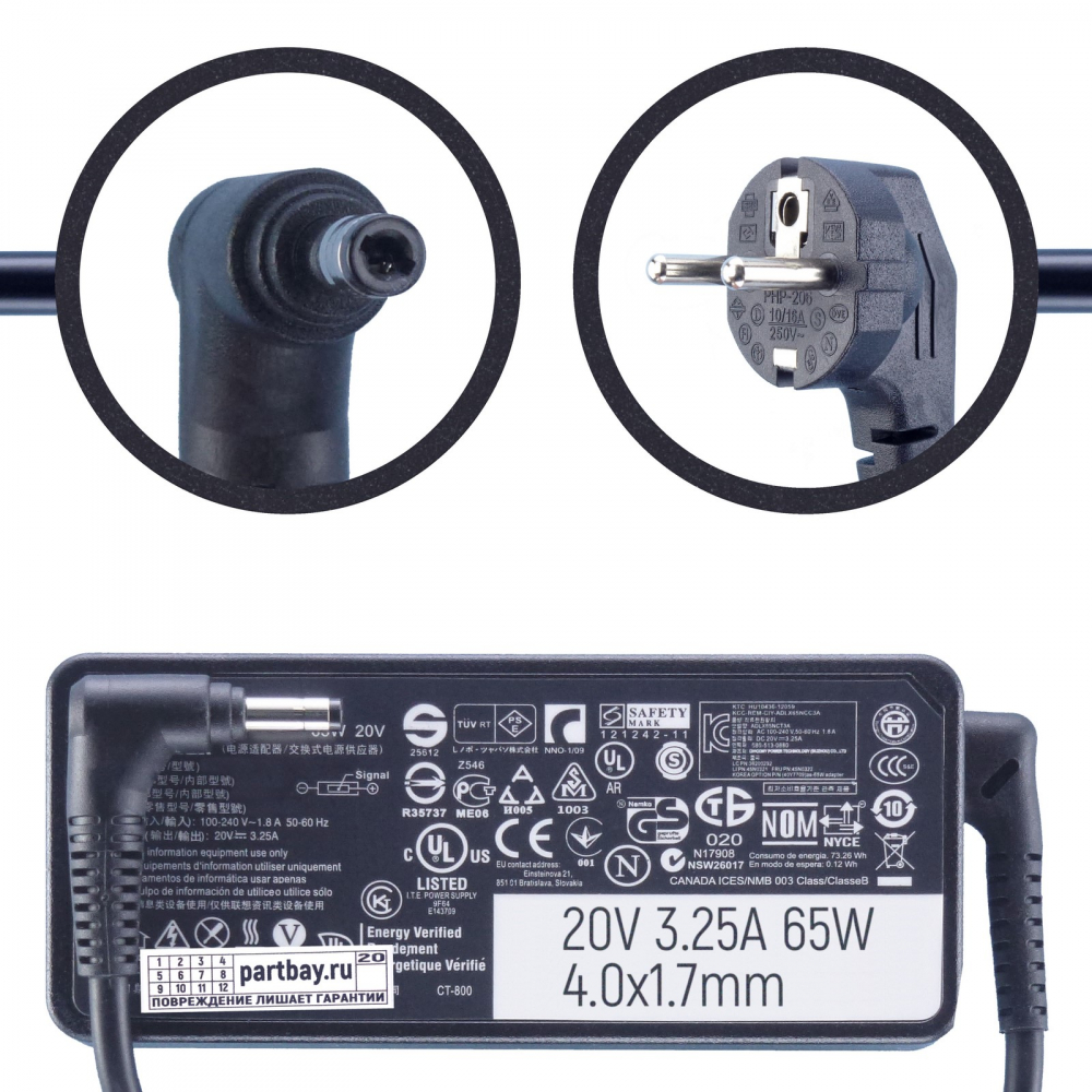 5A10H43617 Блок питания для Lenovo 20V 3.25A 4.0x1.7mm 65W (совместимый), Черный