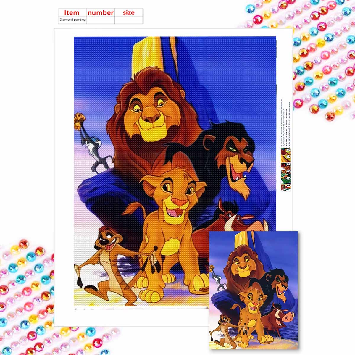 5D Алмазная Живопись Сделай Сам Симба и его спутники Полная Выкладка Стразы Мозаика Вышивка Изделия Ручной Работы Домашний Декор Подарок Round 30x40cm