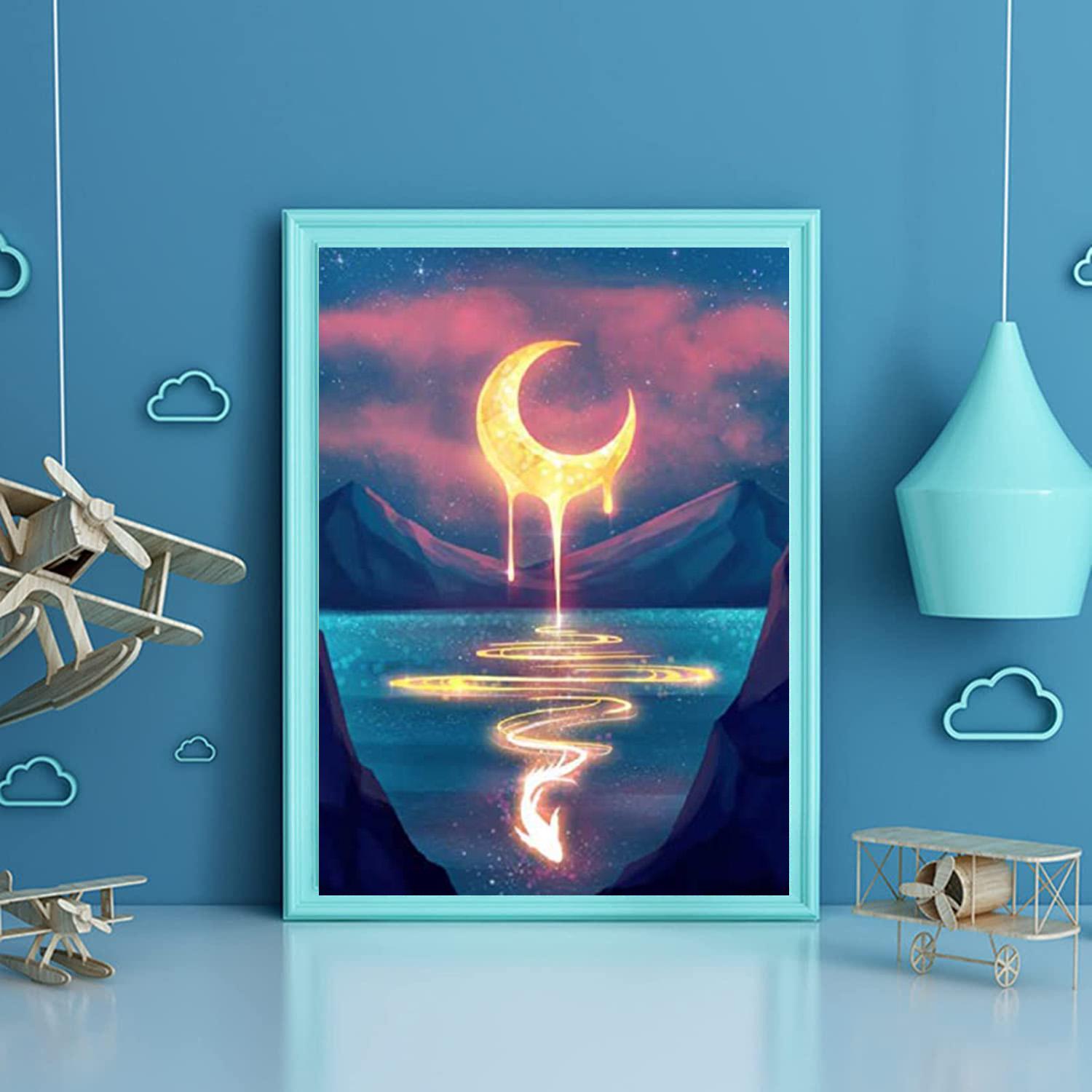 5D DIY алмазная живопись Луна и залив, набор для вышивки крестом, мозаика, алмазная вышивка, роза, полная круглая/квадратная дрель, украшение для дома Round 40x50cm