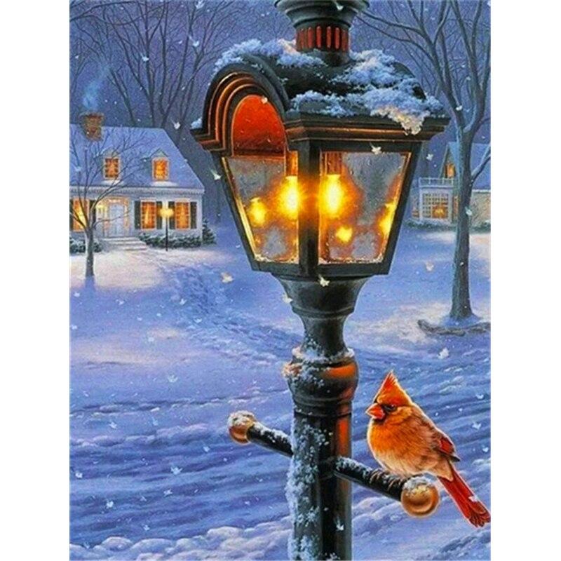 5D DIY алмазная живопись уличный фонарь Алмазная вышивка снежная сцена вышивка крестиком полная круглая дрель ремесла домашний декор подарок Full Round 15x20CM